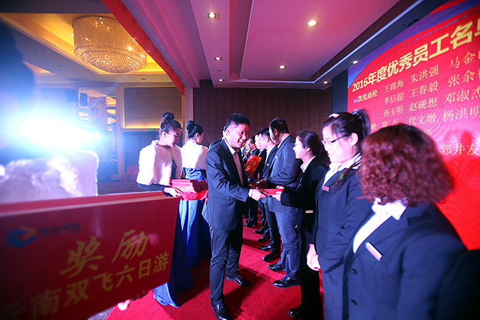 公司領(lǐng)導(dǎo)感謝全體員工一年來的辛苦付出,并頒發(fā)了年度杰出經(jīng)理人、銷售精英、年度最佳團(tuán)隊、質(zhì)量控制先鋒以及年度員工代表和優(yōu)秀員工等獎項,表彰了在2016年工作中表現(xiàn)優(yōu)異的先進(jìn)個人和集體。