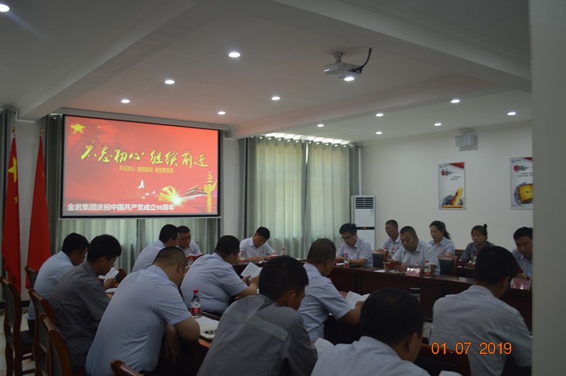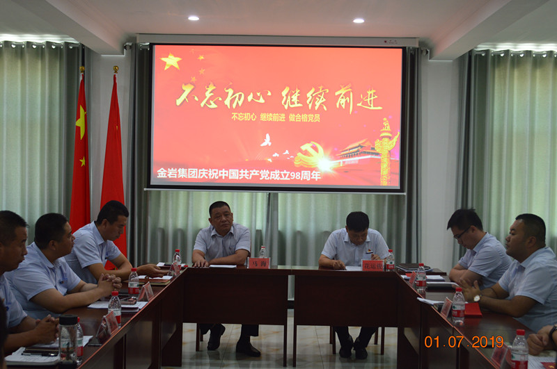 金巖集團(tuán)黨支部于2019年7月1日黨的生日組織全體黨員及入黨積極分子并邀約集團(tuán)各級(jí)領(lǐng)導(dǎo)在公司會(huì)議室開展以“不忘初心、牢記使命”為主題的學(xué)習(xí)座談會(huì)。
